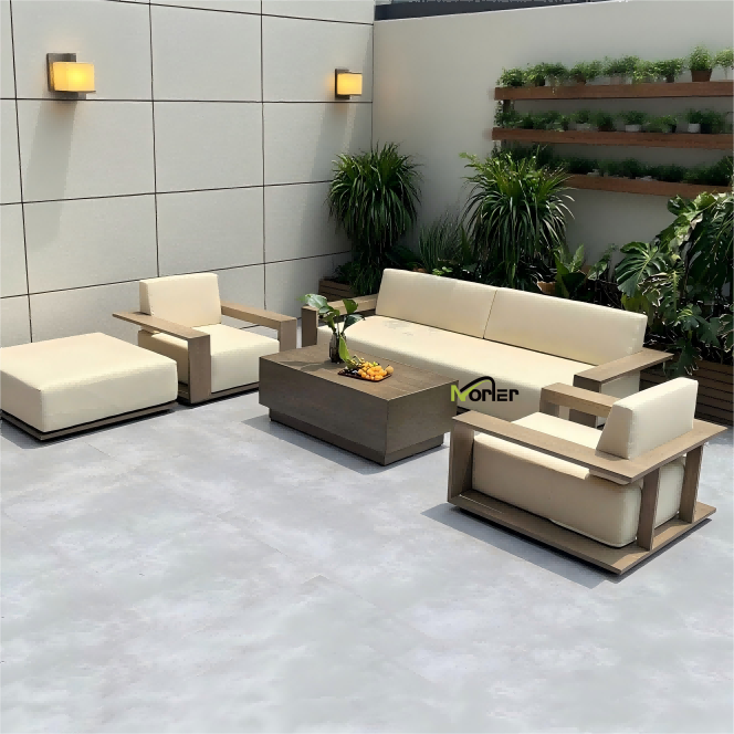 2. Софа од минималистичка алуминиумска легура: Лесна и отпорна на 'рѓа, со чисти линии, совршена за балкони со чист и ненатрупан стил.