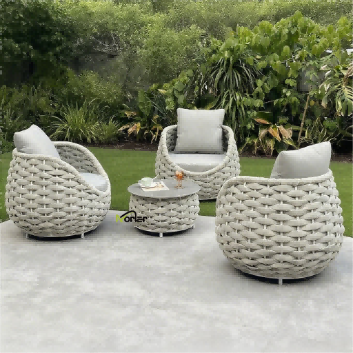 1. Ратан тросед: Направен со PE ратан со висока густина, отпорен е на сонце и дожд, создавајќи природна и топла атмосфера на отворено.