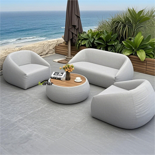 3. Тапациран тросед на отворено: Удобно искуство на мрзливите луѓе, со меки, дебели перничиња и материјали што брзо се сушат, што го прави удобно легнување или седење.